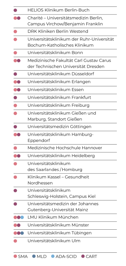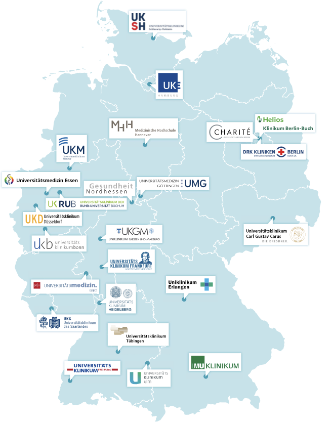 Ab April 2024 wurde das Konsortium um 15 Behandlungszentren erweitert und es sind jetzt insgesamt 24 (Universitäts-) Kliniken beteiligt.